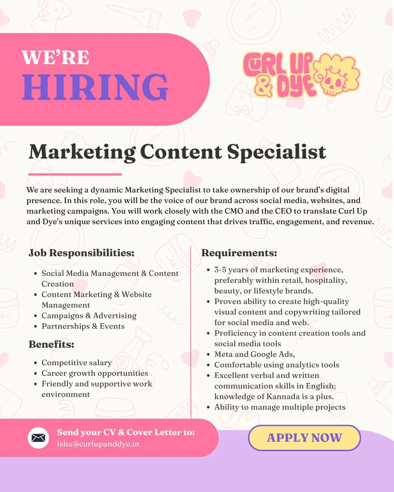 Hey! We’re Curl Up and Dye, a hair salon specializing in curly hair, located in Indiranagar, Bangalore that strives to make every individual fall in love with their most striking feature, their hair. All it takes is a little investment and a lot of love and patience, and we’re here to help you get the right balance of both without wanting to pull your hair out (pun intended).